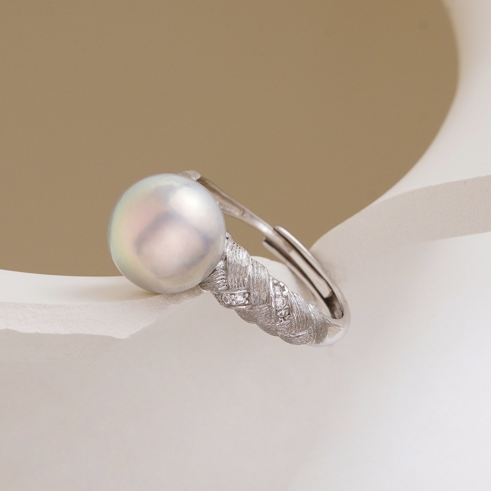 High-end gray twisted ring